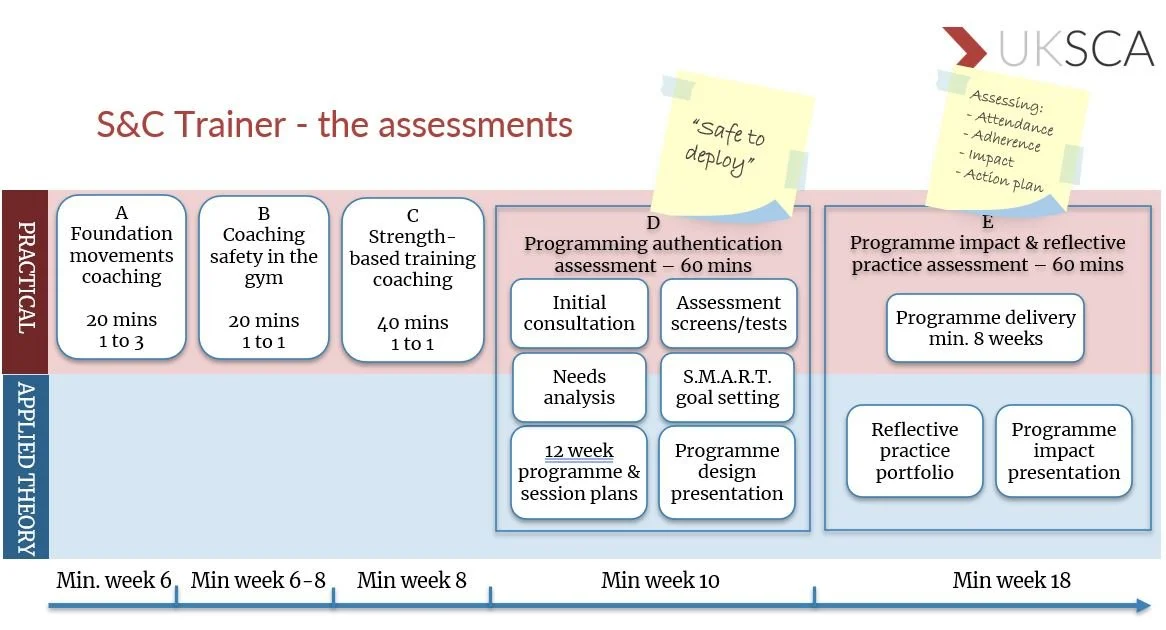 Practical assessments (A - gym safety, B - foundational movement skills, C - strength-based training)